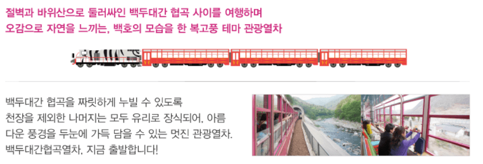 ② 상단메뉴 관광열차 → 백두대간협곡열차 클릭