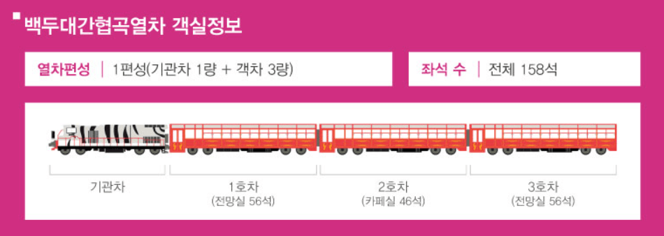 1호차,2호차,3호차 : 전망석, 2인석 ( 전체 158석 )
